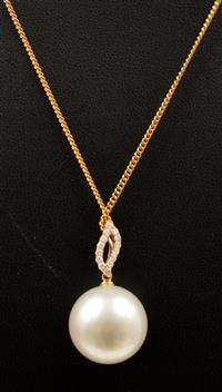 A SOUTH SEA PEARL AND DIAMOND PENDANT, SET IN 18CT GOLD