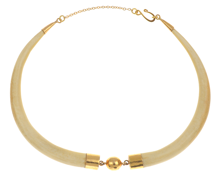 Featuring two polished fluted ivory panels, having caps to each end and centred by a gold ball link, all set in 22ct gold.