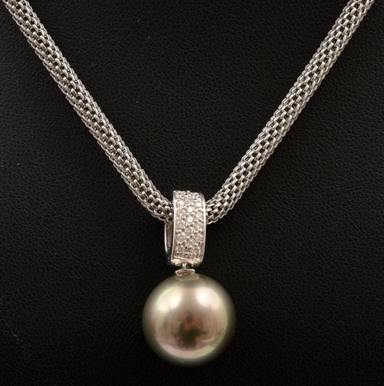 A TAHITIAN PEARL AND DIAMOND PENDANT, SET IN 18CT WHITE GOLD