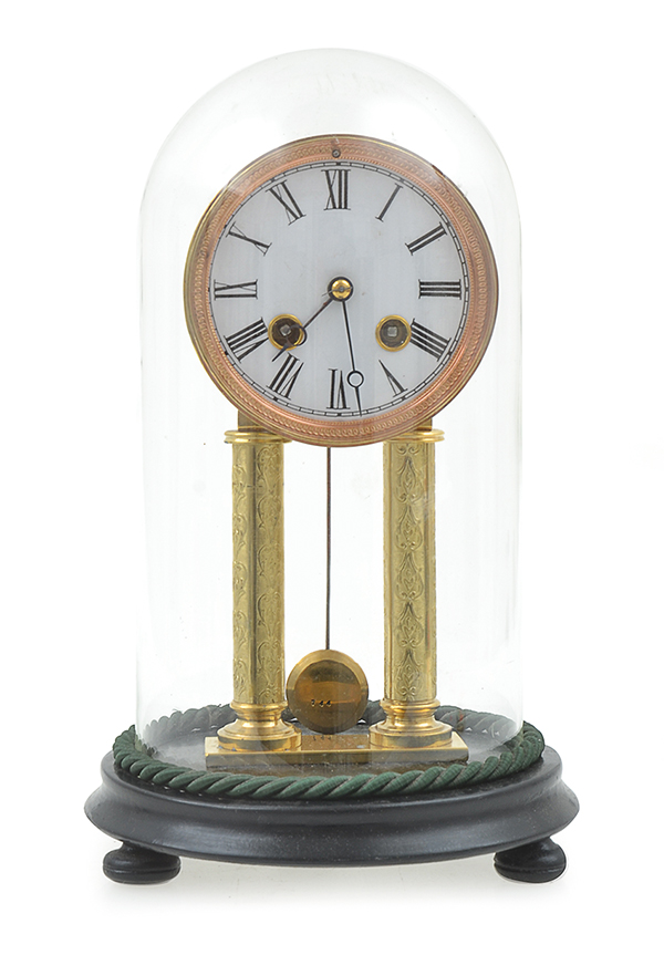 AN ASSEMBLED FRENCH BRASS CLOCK UNDER DOME