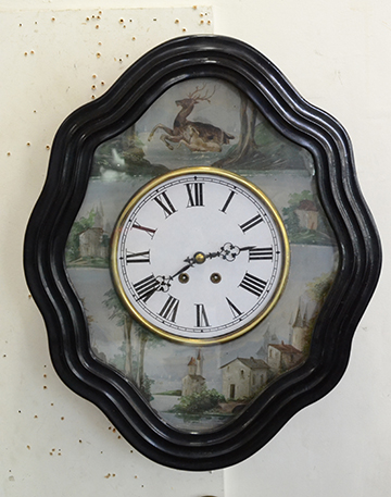 A FRENCH PAINTED AND EBONISED VIGNERON CLOCK