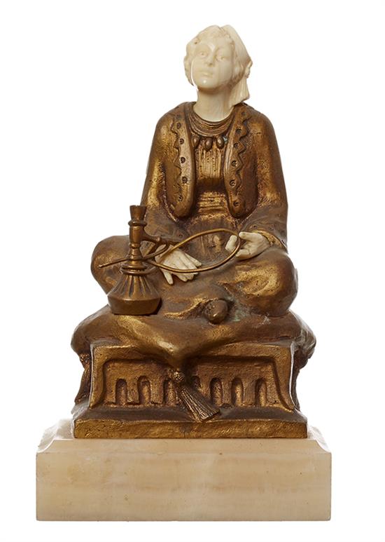 AN AMERICAN ART DECO IVORY AND GILT BRONZE 'HOOKAH' FIGURE BY H.M.WHITE, CIRCA 1900