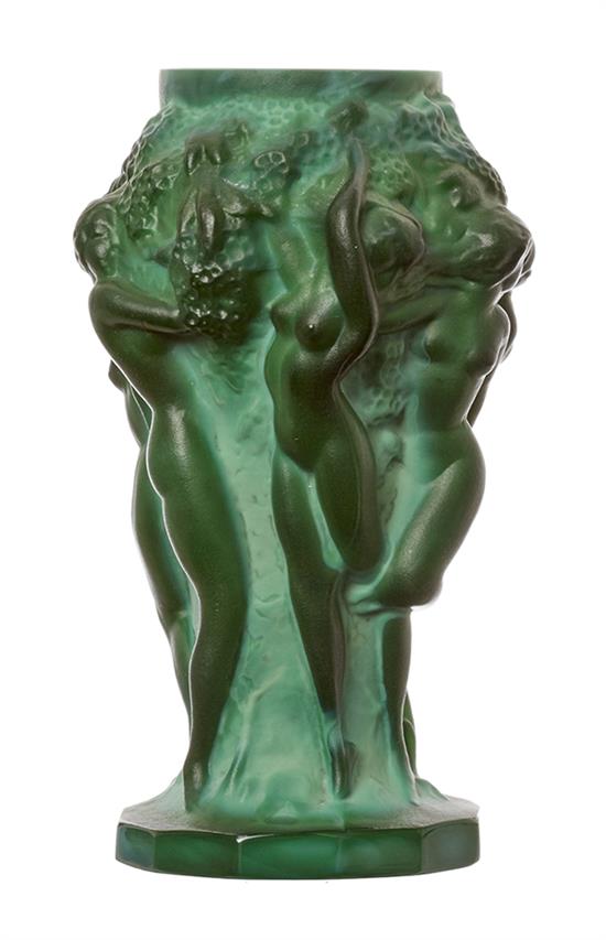A BOHEMIAN DESNA MALACHITE GLASS 'HARVEST' VASE