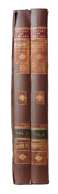 Bound as a pair of gilt tooled volumes, The History of England Vol I & II, with marbled paper surround, the box housing a turned and stained ivory chess set and a pair of bone shaker, a pair of timber shakers and backgammon pieces.