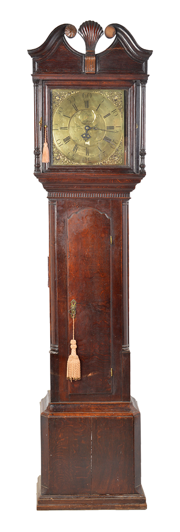 A 19TH CENTURY OAK CASED LONG CASE CLOCK