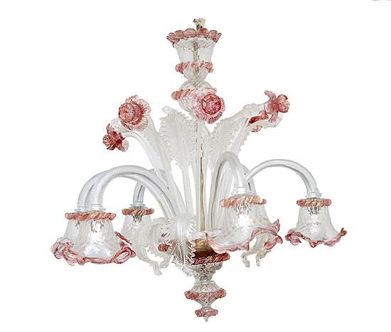A MURANO VENETIAN GLASS SIX BRANCH CHANDELIER, FIRST HALF OF THE 20TH CENTURY