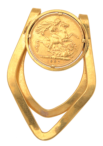 Centrally set with a full gold sovereign, 1907, mounted in an 18ct gold frame.