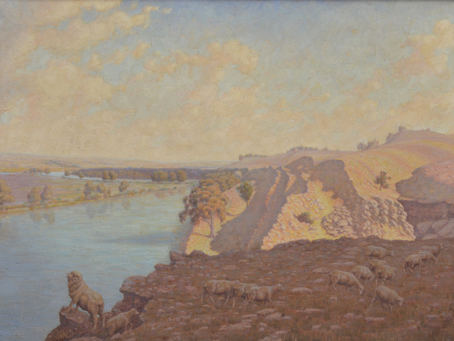 JAMES FERRIES (1875-1951), RIVER MURRAY LANDSCAPE ABOVE MANNUM, SOUTH AUSTRALIA; SELF PORTRAIT (DOUBLE-SIDED), OIL ON CANVAS, 75 X 100CM