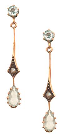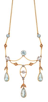 AN ANTIQUE AUSTRALIAN AQUAMARINE, WHITE SAPPHIRE AND SEED PEARL NECKLACE