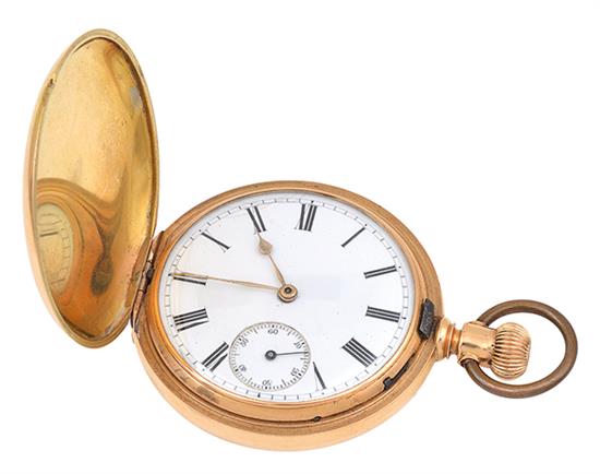 Crown wind and lever set movement, circular white dial with black Roman numerals and subsidiary seconds dial at six, signed case and movement, 18ct gold case with engraved initials, 45mm diameter.