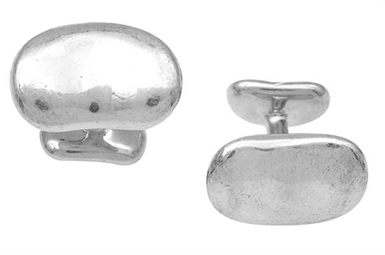 Designed by Elsa Peretti, the bean cufflinks styled in sterling silver, signed, boxed.