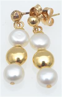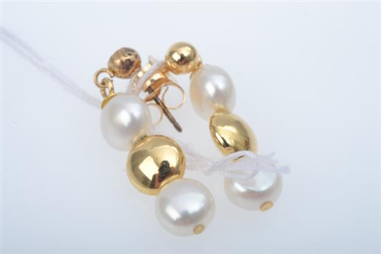 A PAIR OF PEARL DROP EARRINGS, IN 9CT GOLD A/F