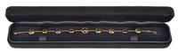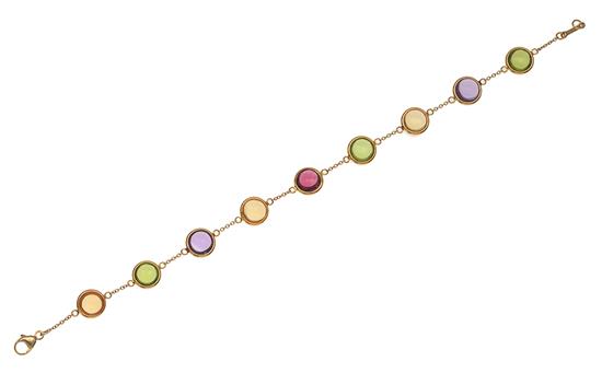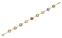 Set with citrine, peridot, garnet and amethyst all cut en cabochon, mounted in 18ct gold, signed, total length 180mm, boxed.