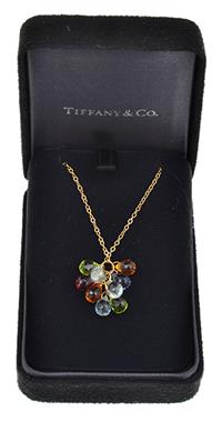 A GEM SET CLUSTER PENDANT NECKLACE BY TIFFANY AND CO.