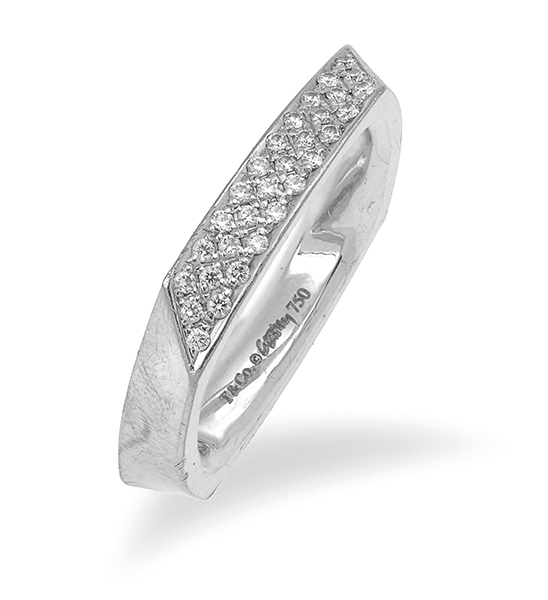 Designed by Frank Gehry, the geometric frame pave set with round brilliant cut diamonds, mounted in 18ct white gold, signed, ring size I, boxed.