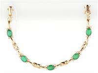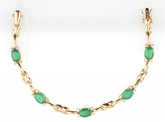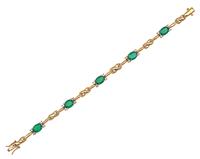 Featuring five oval cut emeralds totalling 6.40cts, offset with round brilliant cut diamonds, mounted in 18ct gold, total length 180mm.