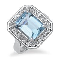 AN AQUAMARINE AND DIAMOND PLAQUE RING