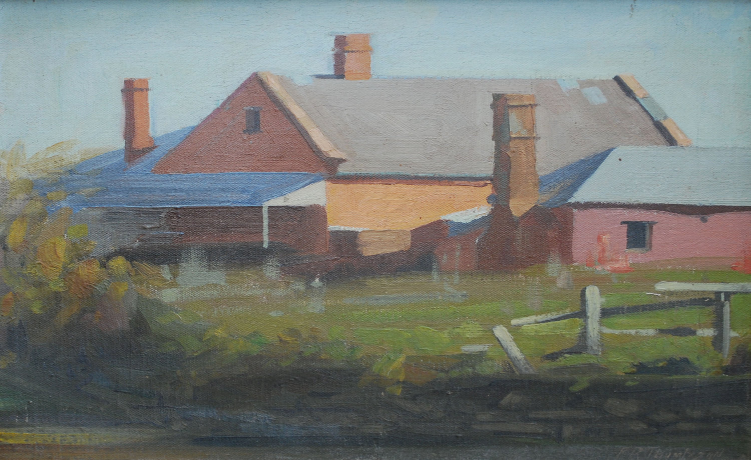 FRANCIS ROY THOMPSON (1896-1966), HOMESTEAD, OIL ON CANVASBOARD, 32 X 38CM