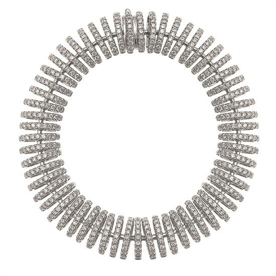 Having articulated convex links set with round brilliant cut diamonds totalling 6.91cts, set in 18ct white gold, total length 195mm.