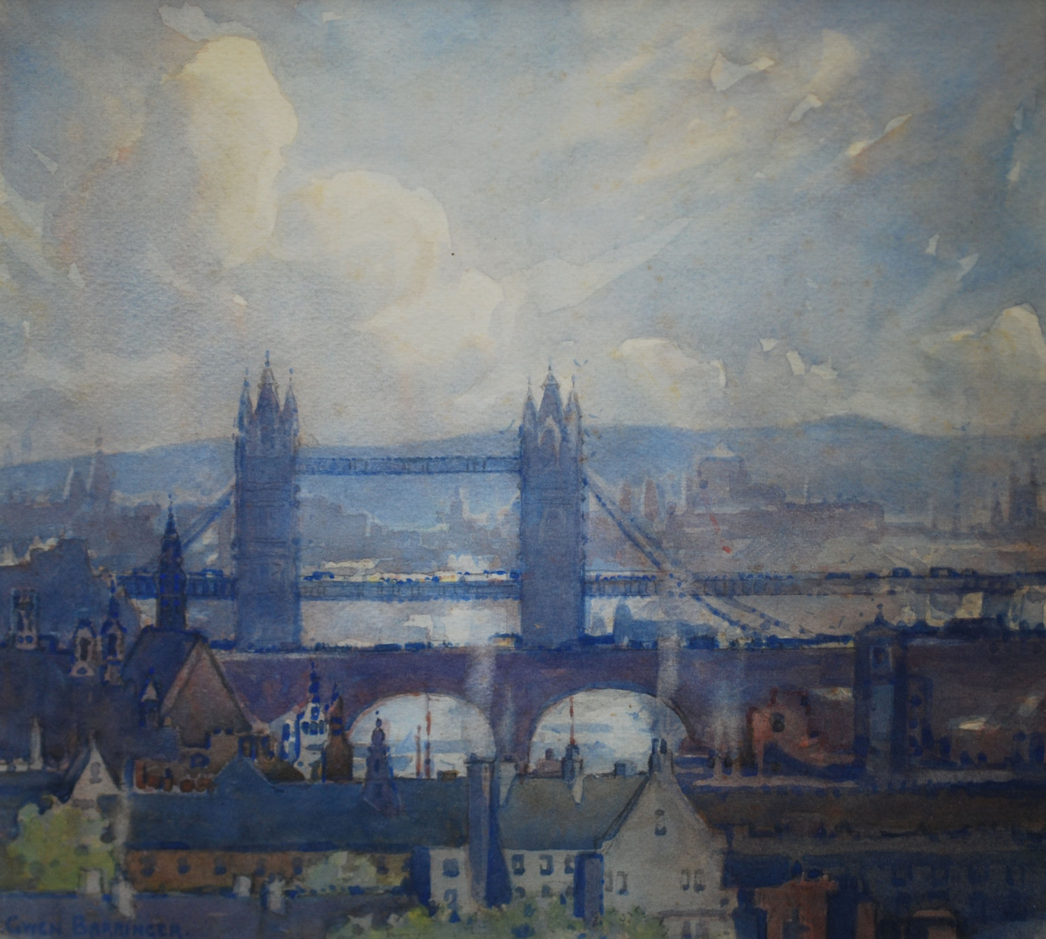 GWEN BARRINGER (1882-1960), THE TOWER BRIDGE - LONDON, WATERCOLOUR, 27 X 30CM