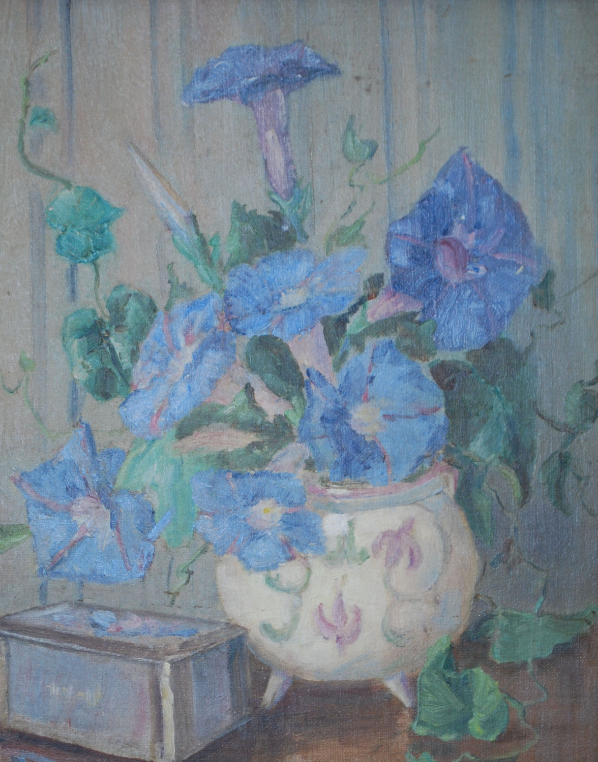 ARTIST UNKNOWN (INSCRIBED S. WILLIAMS VERSO), STILL LIFE WITH MORNING GLORY, OIL ON CANVASBOARD, 29 X 23.5CM