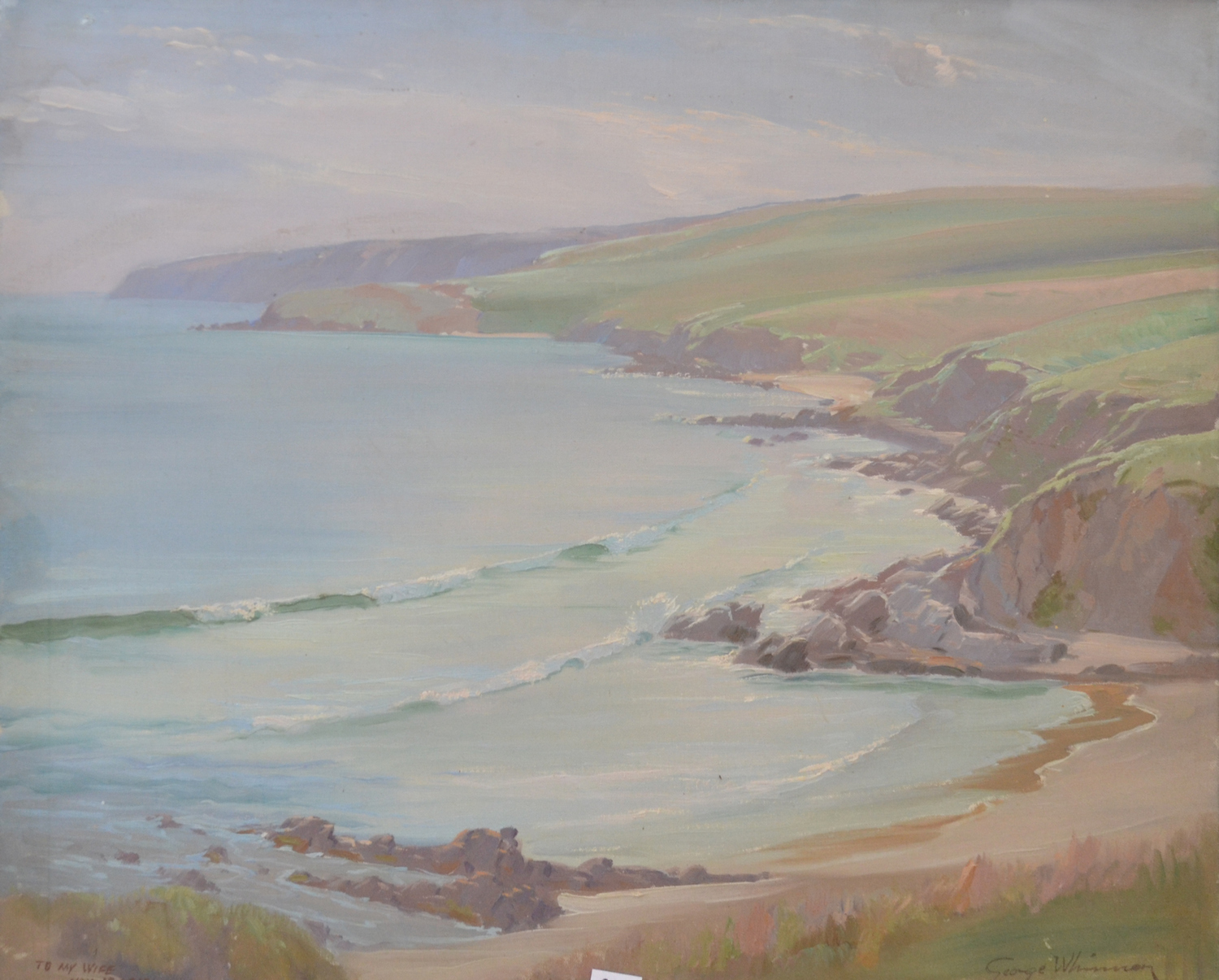 GEORGE WHINNEN (1891-1950), SOUTH COAST FROM THE BLUFF, VICTOR HARBOUR 1891, OIL ON CANVAS, DATED VERSO, 50 X 61CM