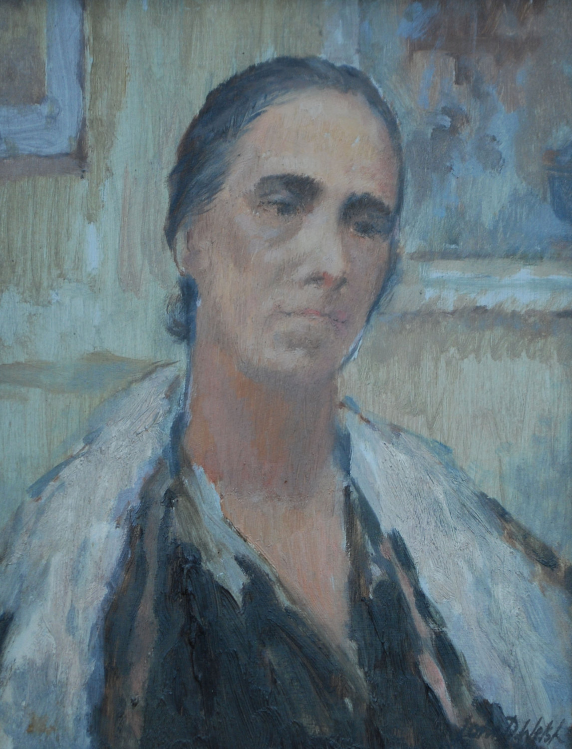 JOHN WELSH, PORTRAIT OF A LADY, OIL ON BOARD, 24 X 19CM