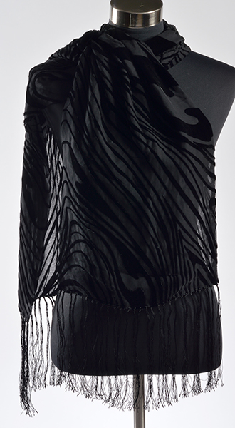 The silk blend black scarf with fringe, 32 x 81cm, with box.