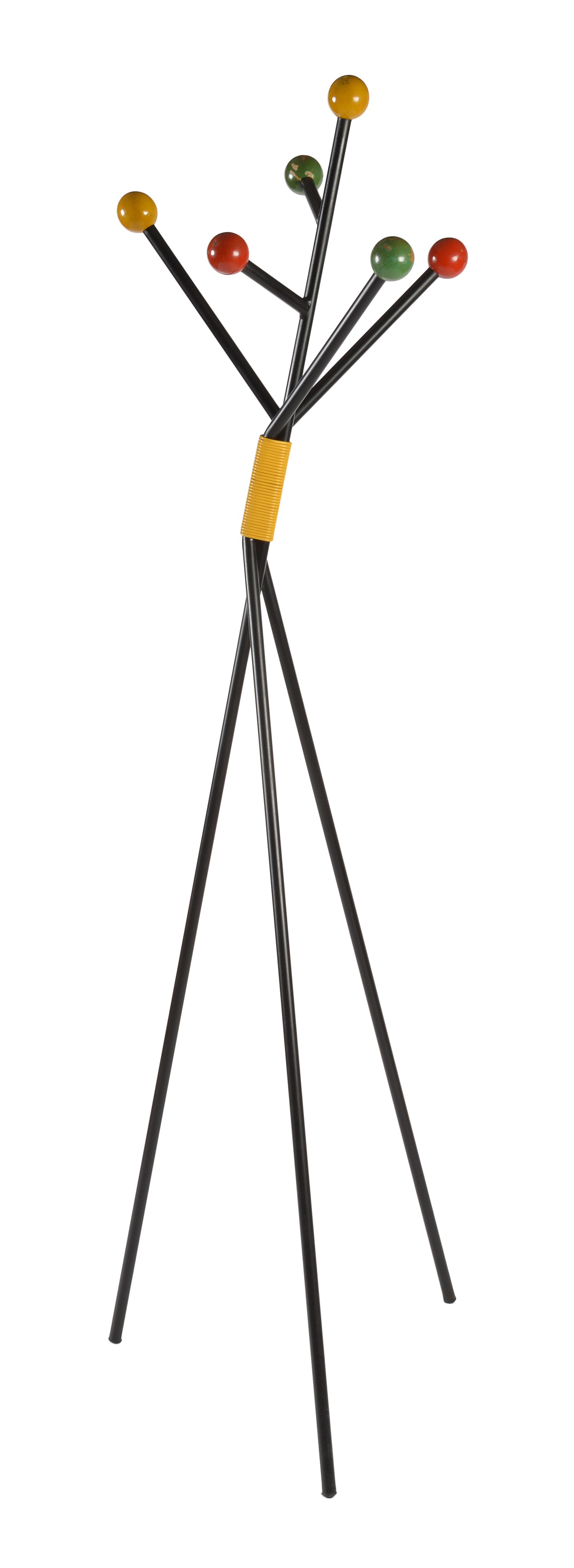 European coat rack is in great condition. Original coloured balls show wear in places.