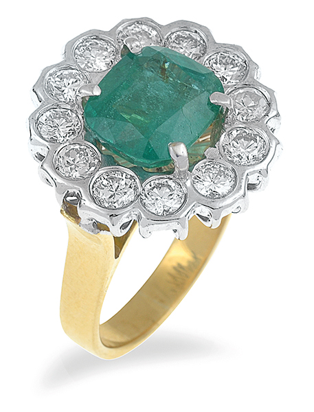 AN EMERALD AND DIAMOND CLUSTER RING
