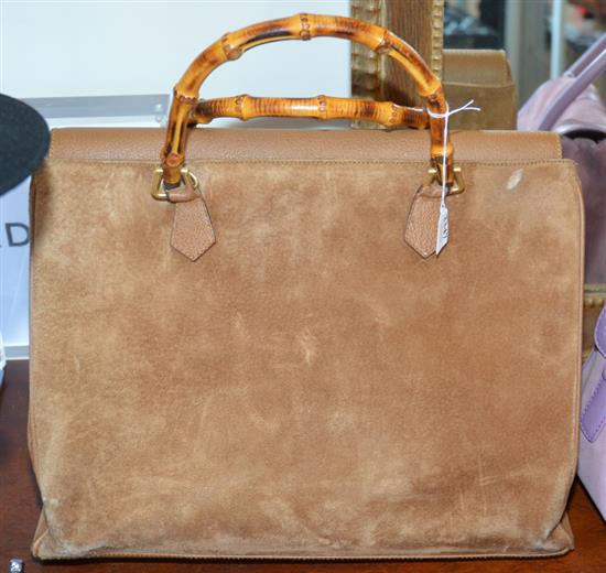 A SUEDE HANDBAG WITH BAMBOO HANDLES BY GUCCI