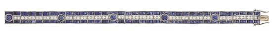 AN ART DECO PLATINUM SAPPHIRE AND DIAMOND BRACELET