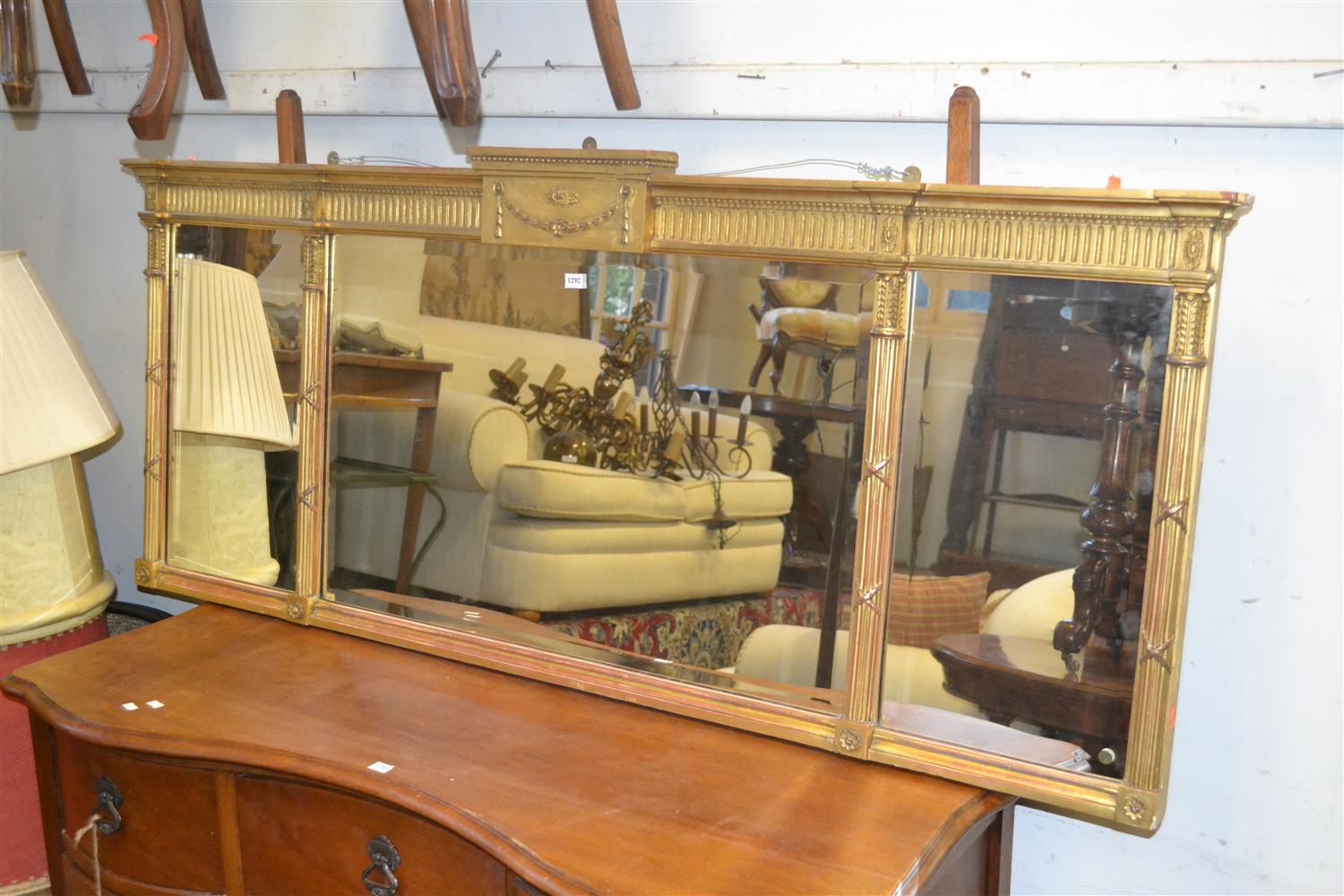 A 19TH CENTURY GILTWOOD THREE SECTIONAL WALL MIRROR