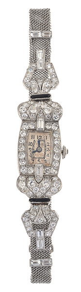 A LADIES ART DECO PLATINUM DIAMOND AND ONYX WRISTWATCH
