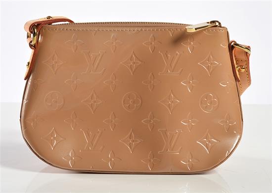 Styled in beige Monogram Vernis with tan leather trim and gold metal hardware, MI1025, 22 x 15 x 7cm.