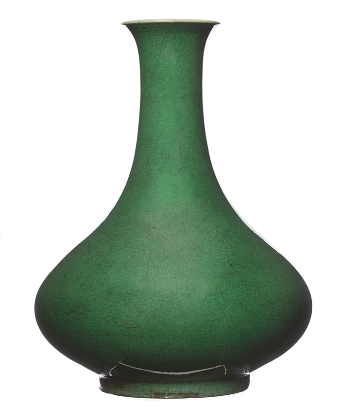 The bottle form with deep emerald green crackle glaze, 30cm high.