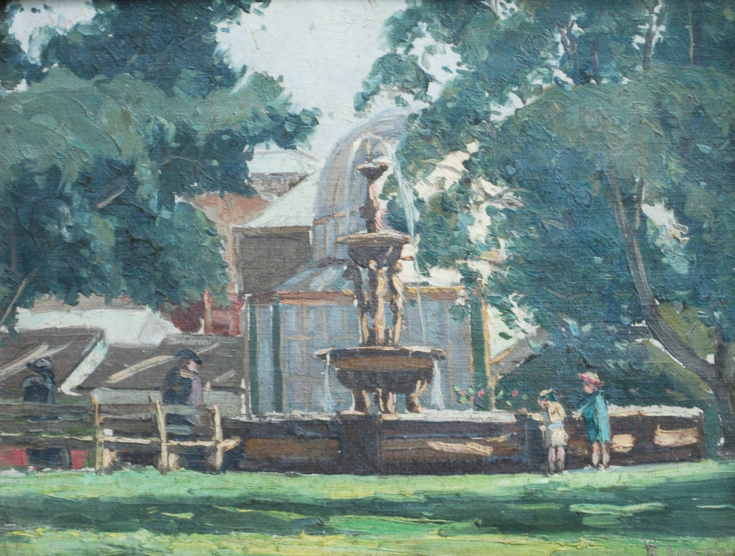 ROBERT WADEN (1900-1946), FOUNTAIN, BOTANIC PARK, ADELAIDE, OIL ON CANVASBOARD, 25 X 32CM