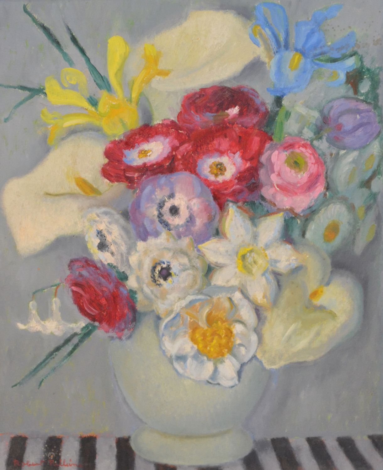ROBERT PULLEINE (1911-), FLOWERS, OIL ON BOARD, 42 X 34CM