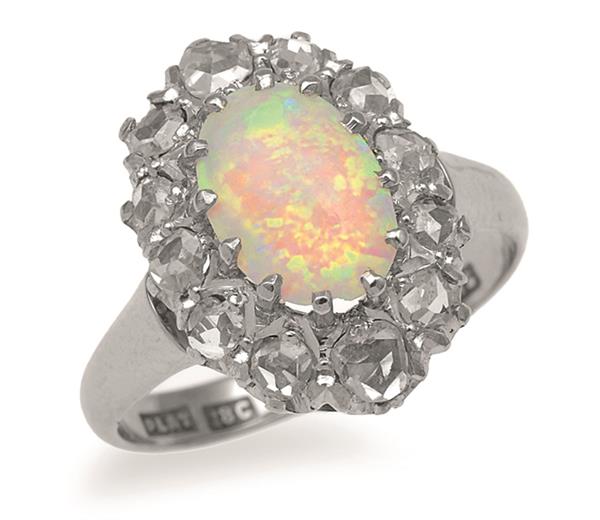 AN ANTIQUE AUSTRALIAN OPAL AND DIAMOND RING BY WENDT