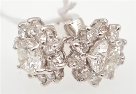 A PAIR OF DIAMOND CLUSTER EARRINGS