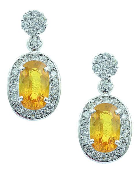 A PAIR OF YELLOW SAPPHIRE AND DIAMOND CLUSTER EARRINGS