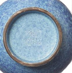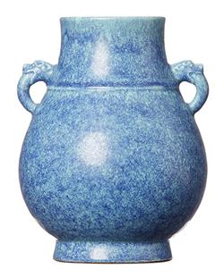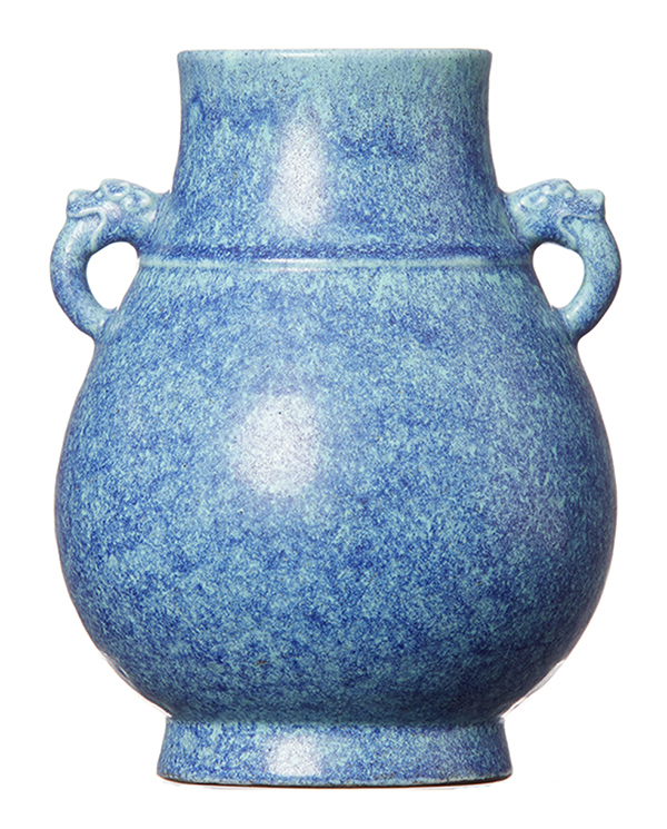 The body with dragon form double handles and mottled blue glaze, 14.5cm high.