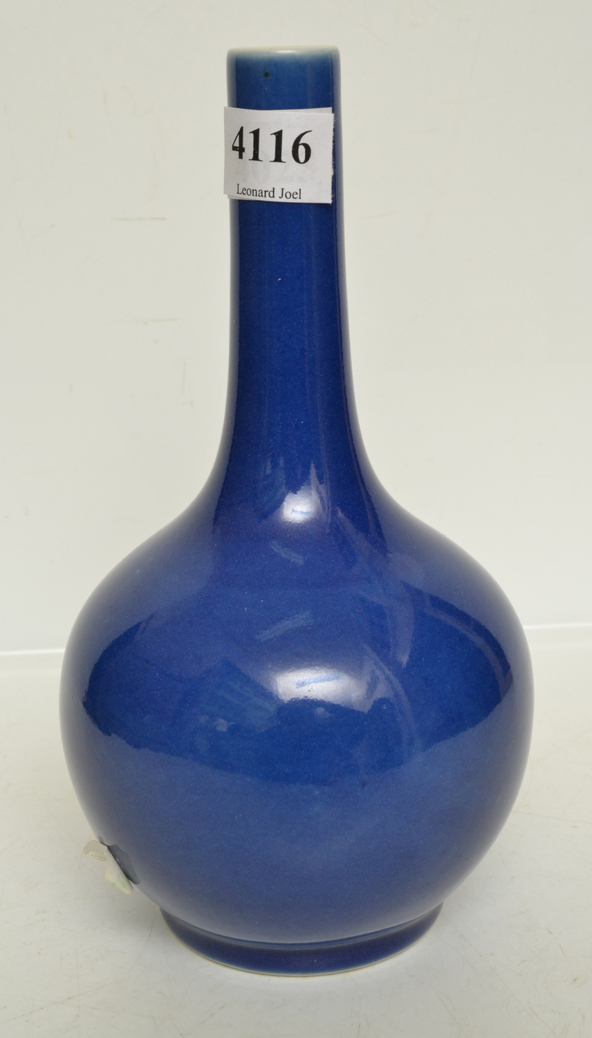 The ovoid shaped body with narrow neck and exterior blue glaze, 19.5cm high.