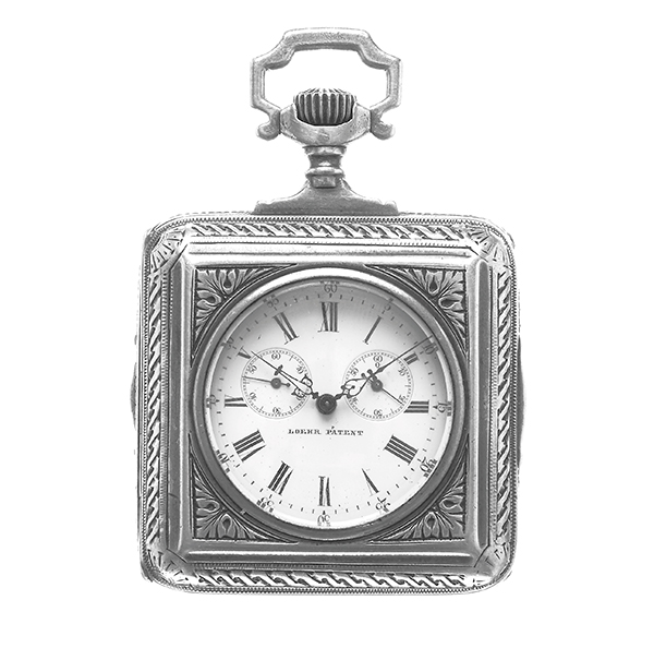 Key wound and set movement, circular white dial with Roman numerals, serial number 572, hallmarked engraved silver case, 50mm diameter.