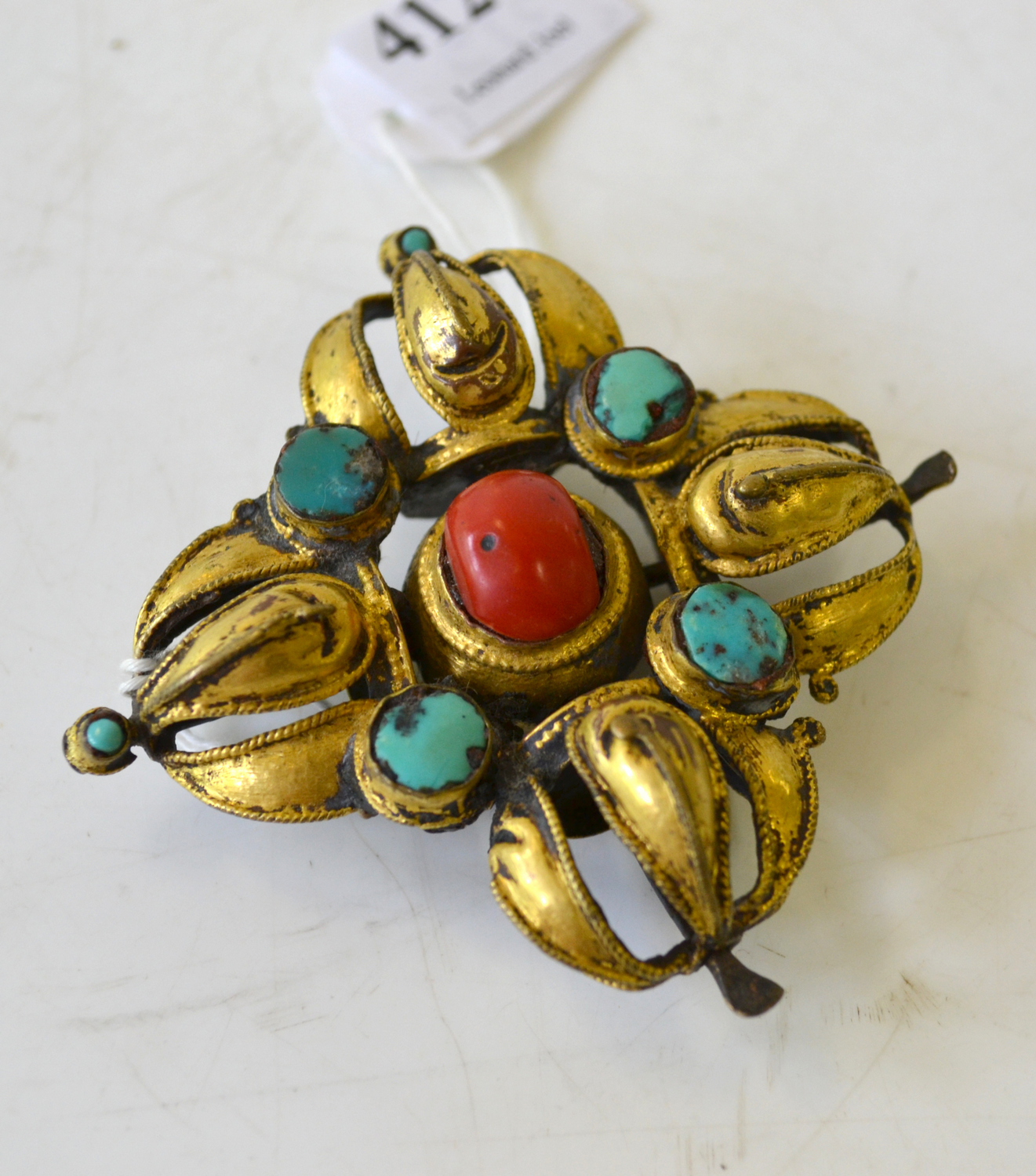 A TIBETAN CORAL AND TURQUOISE ADORNMENT