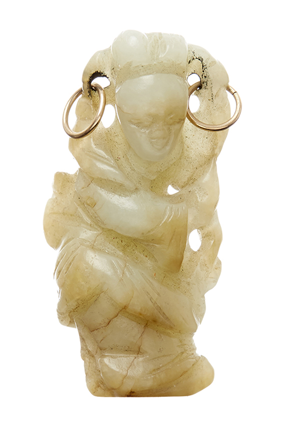 Depicting a finely carved figure wearing a robe. 9cm long.
