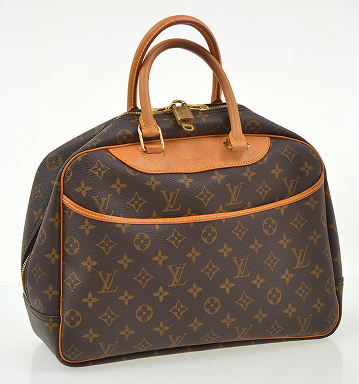 Styled in Monogram canvas with tan leather trim and handles, and gold metal hardware, M47270, MB0093, 34 x 26 x 13cm.