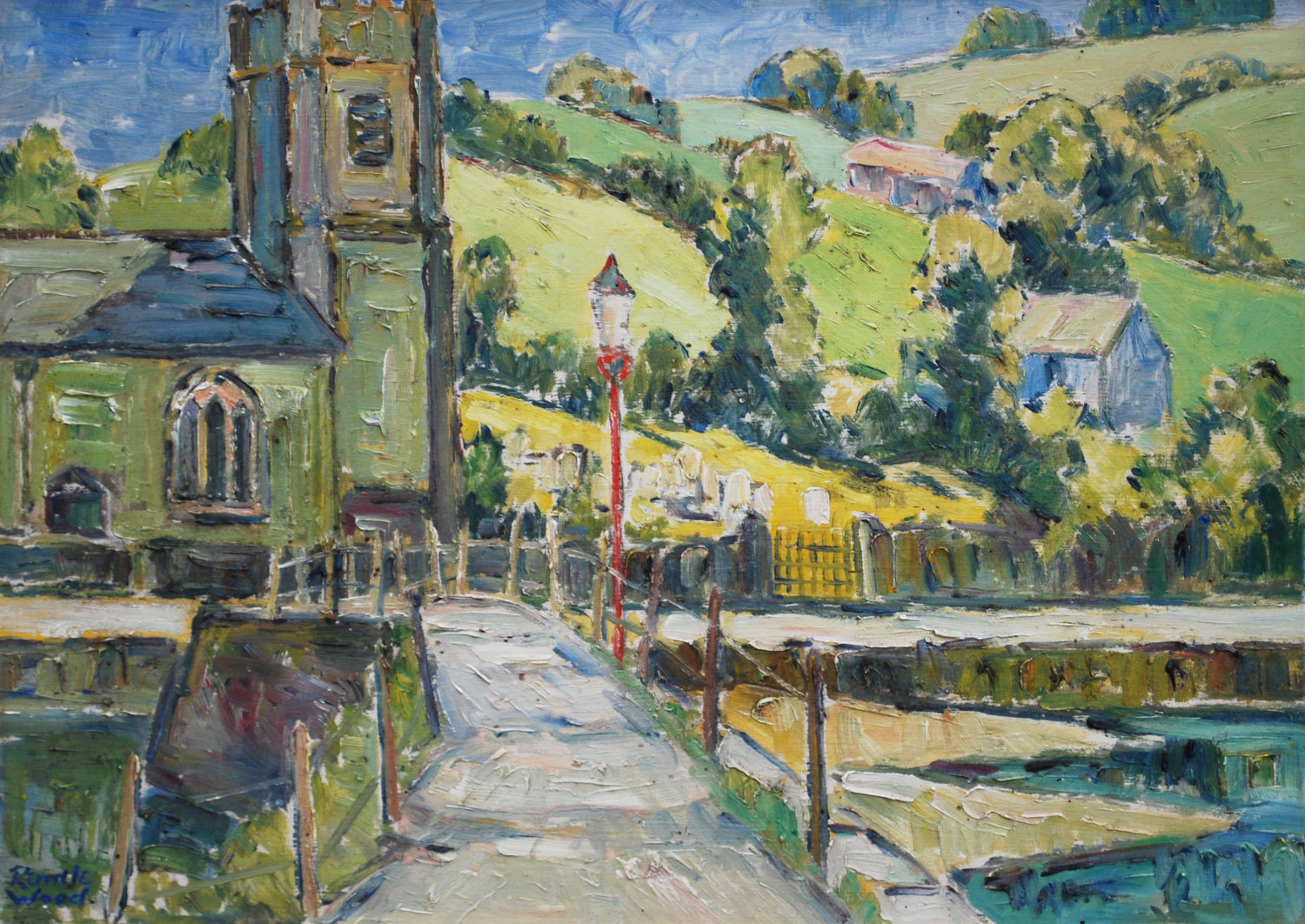 ROBERT SYDNEY RENDLE WOOD (1895-1987), NORTH CORNWALL VILLAGE, OIL ON BOARD, 34 X 45CM