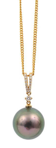A TAHITIAN PEARL AND DIAMOND PENDANT