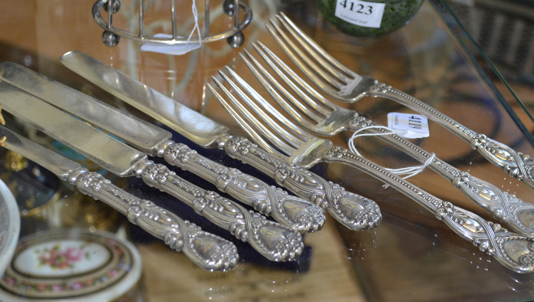comprising three entree knives, a fruit knife and three dinner forks, total weight 384 gms